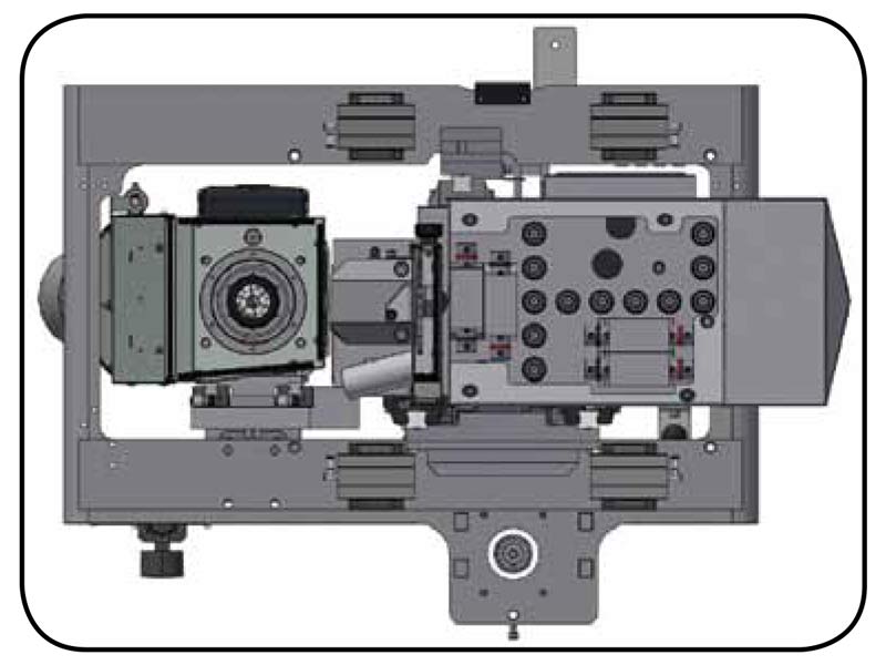 Mounted directly on the Z carriage, it slides on pre-loaded ball runner blocks and on two very high precision, hardened and rectified steel linear guides which guarantee an equal loading capacity in all 4 directions.