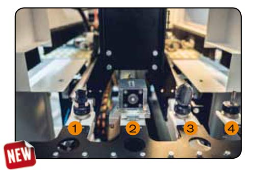 New four (4) position linear magazine with automatic change managed by CN (large Y axis = 1250mm). The new magazine can receive special heads for angular transmissions (Lamello system - OVVO system)