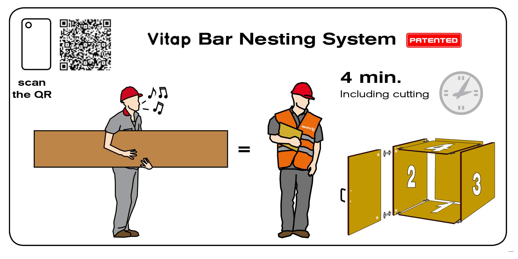 Vitap patented Double Nesting System gives all the advantages of nesting with no limitations in the execution of horizontal holes.