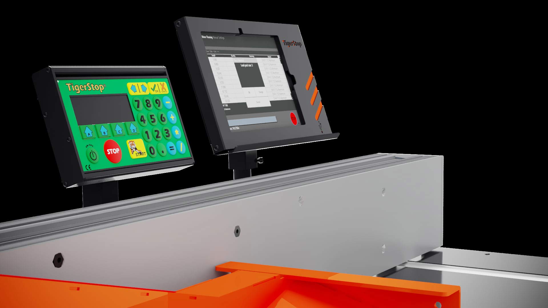 Any TigerStop can be enhanced with cutting edge touch screen control with TigerTouch. Using the TigerTouch touch screen controller, you can download an infinite number of cut lists, display three cut lists at a time for easy switching between work orders, and view statistics such as job status, remnants, remaining parts, and yield.