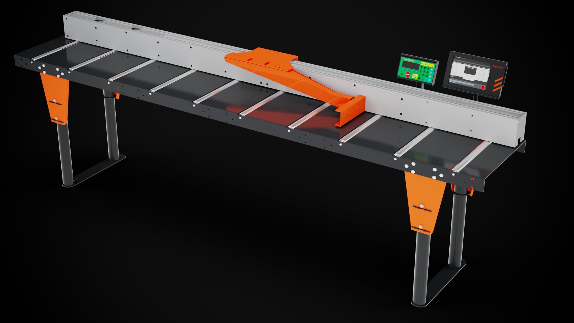 TigerTurbo can push, pull, and position up to 840 lbs. This high speed automatic pusher accurately positions material with its steel reinforced belt and operate at up to 180 feet per minute.